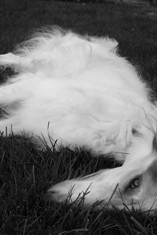 Wallpaper Great Pyrenees dog resting on grass
