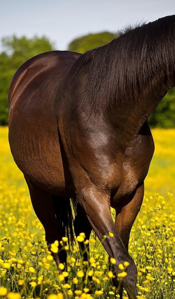 Wallpaper Horse sports on a yellow field