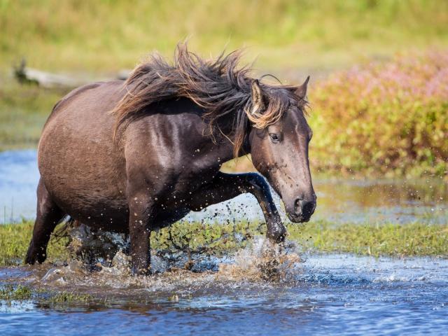 Wallpaper Horse sneaks across the creek