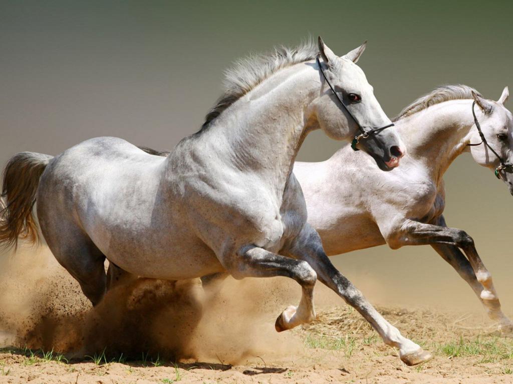 Wallpaper Two horse raising sand