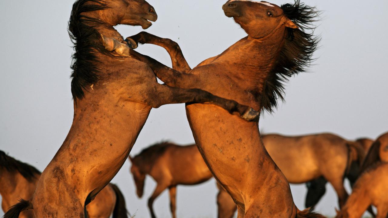 » Wallpaper The struggle of two horses