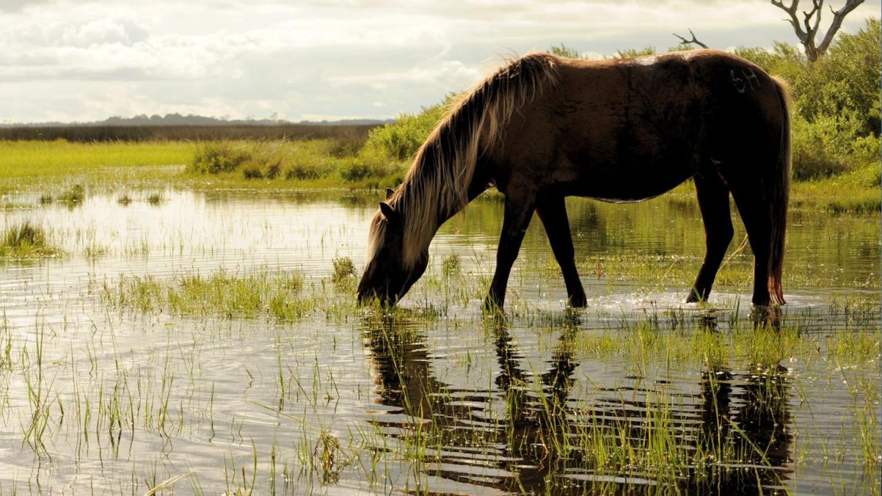 Wallpaper The horse is drinking water
