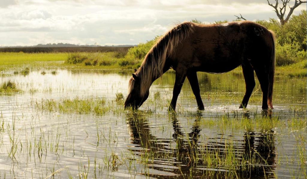 Wallpaper The horse is drinking water