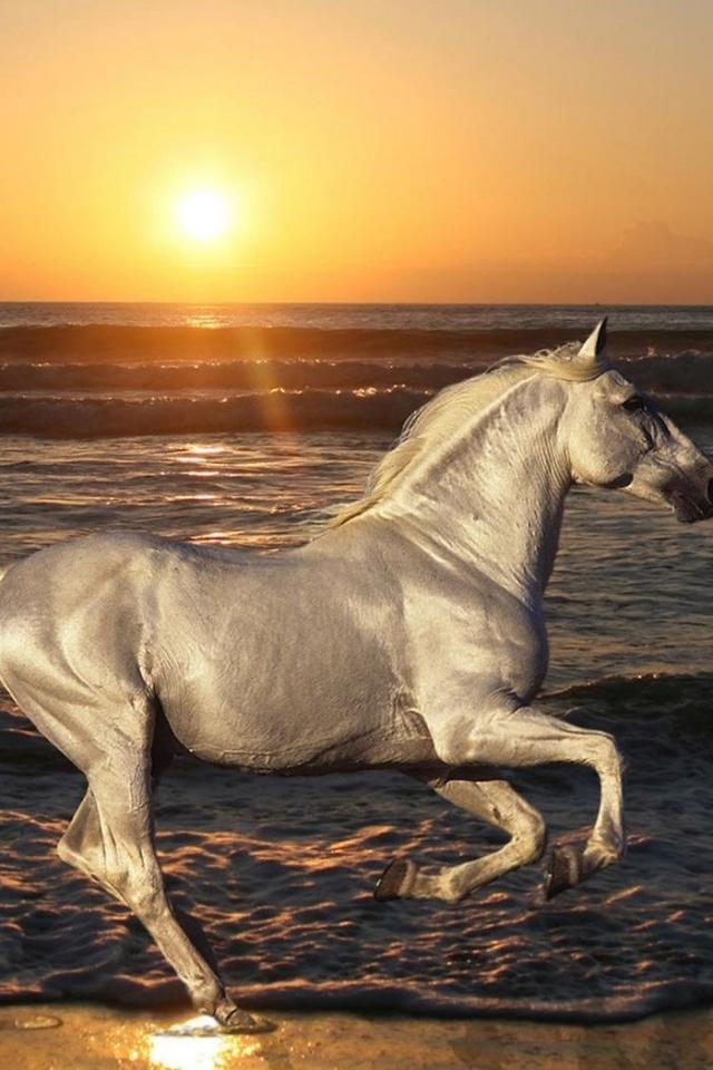 Wallpaper White horse beach