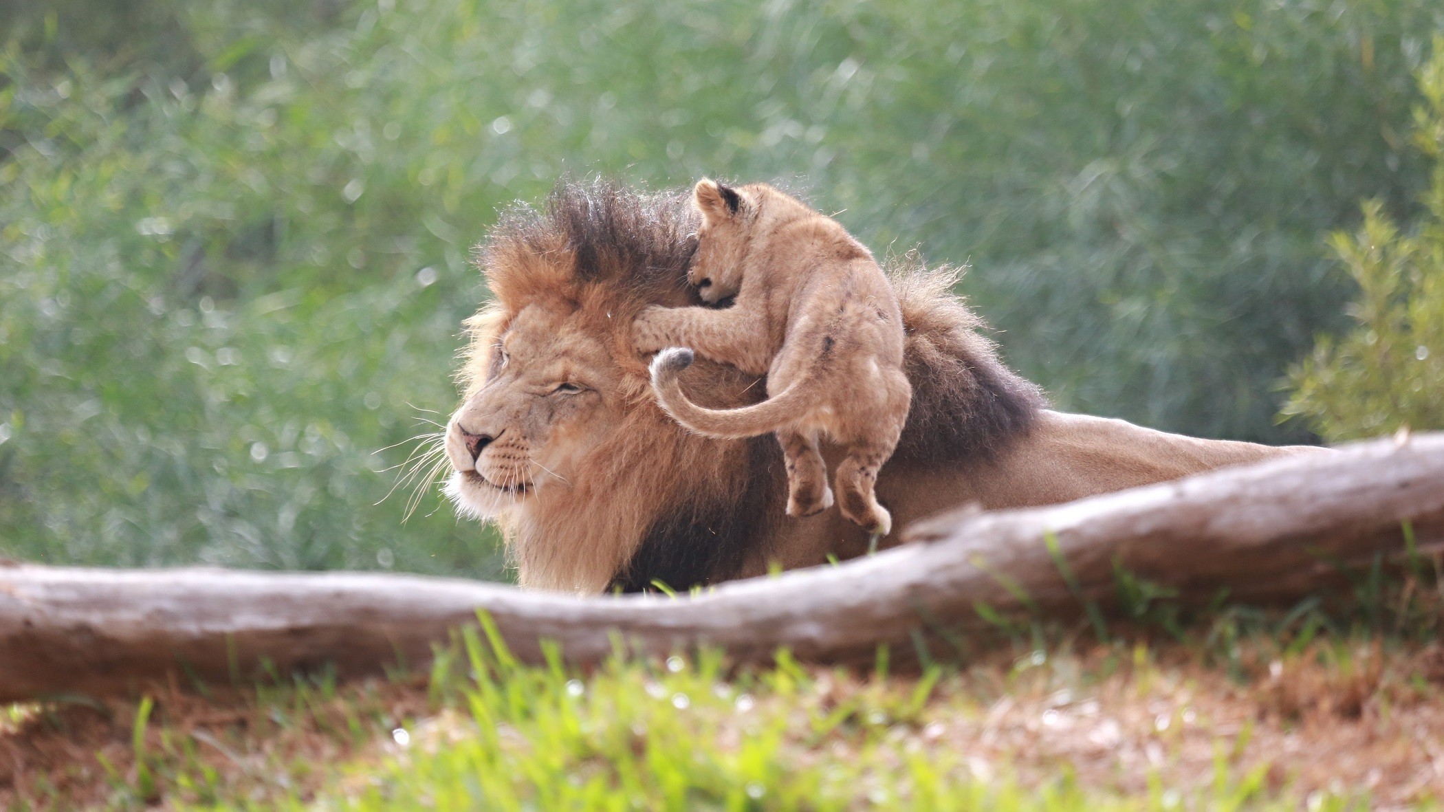 Wallpaper Little lion on the head of his father