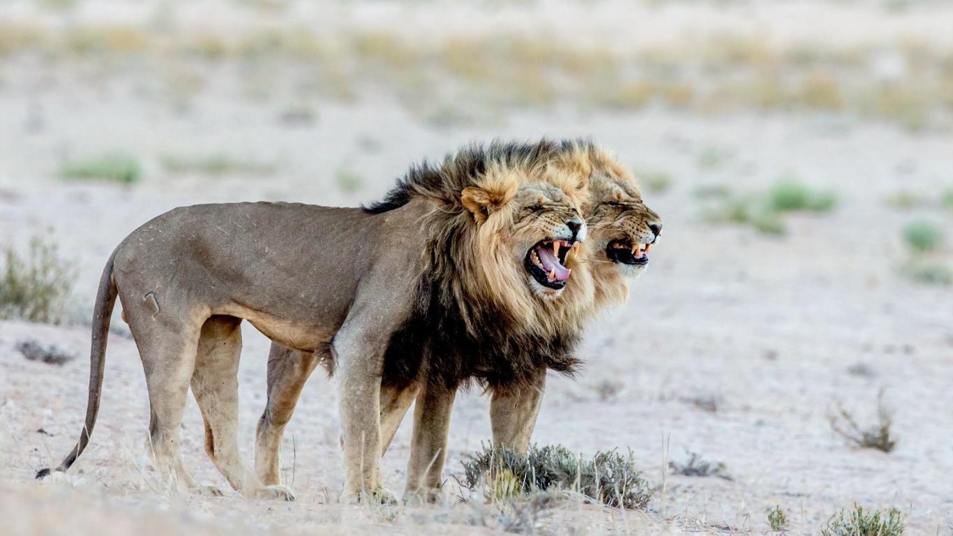 Wallpaper Two old hungry lion