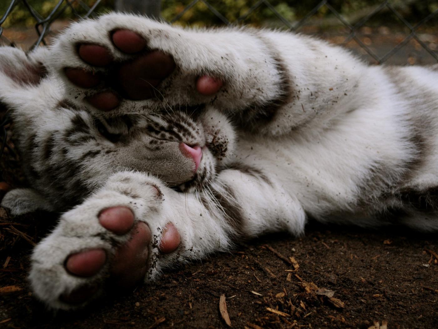 Wallpaper White tiger paws muzzle covers