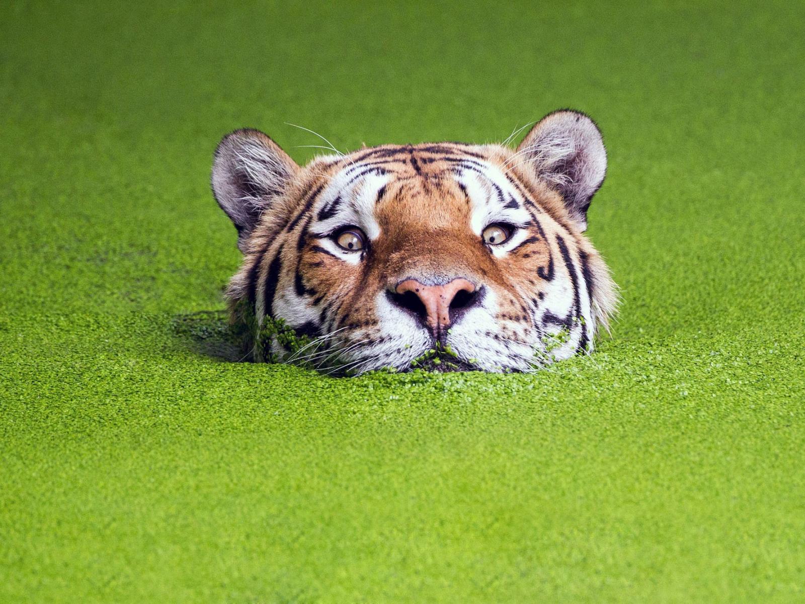 Wallpaper Tiger in the water among the plants