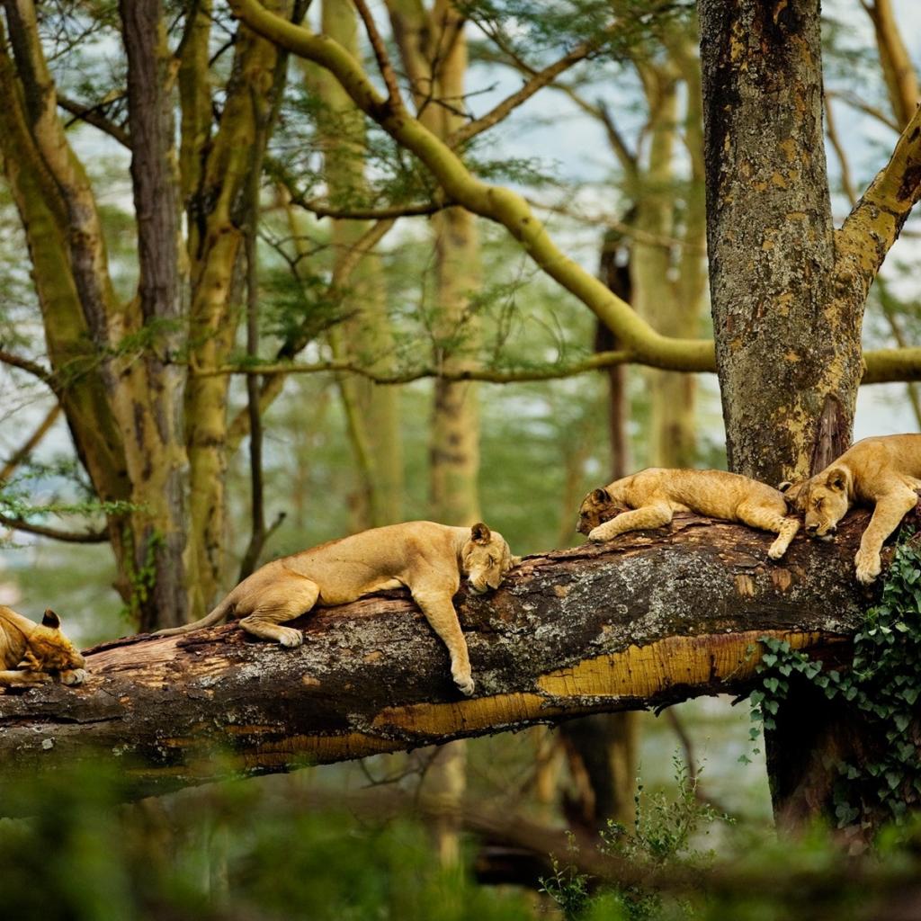 Wallpaper Lions resting on a tree in the jungle