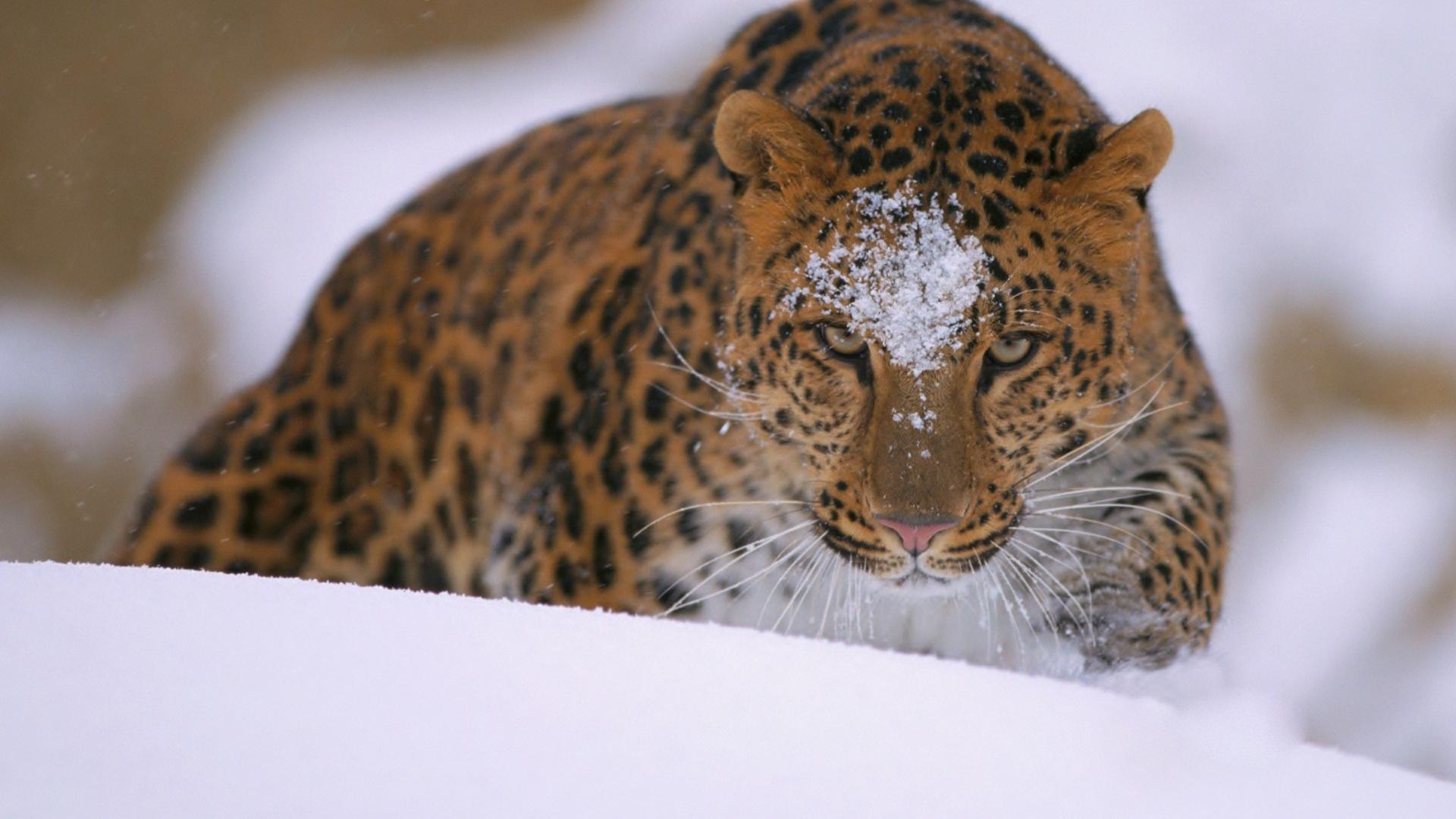 Wallpaper Leopard goes on snowdrifts