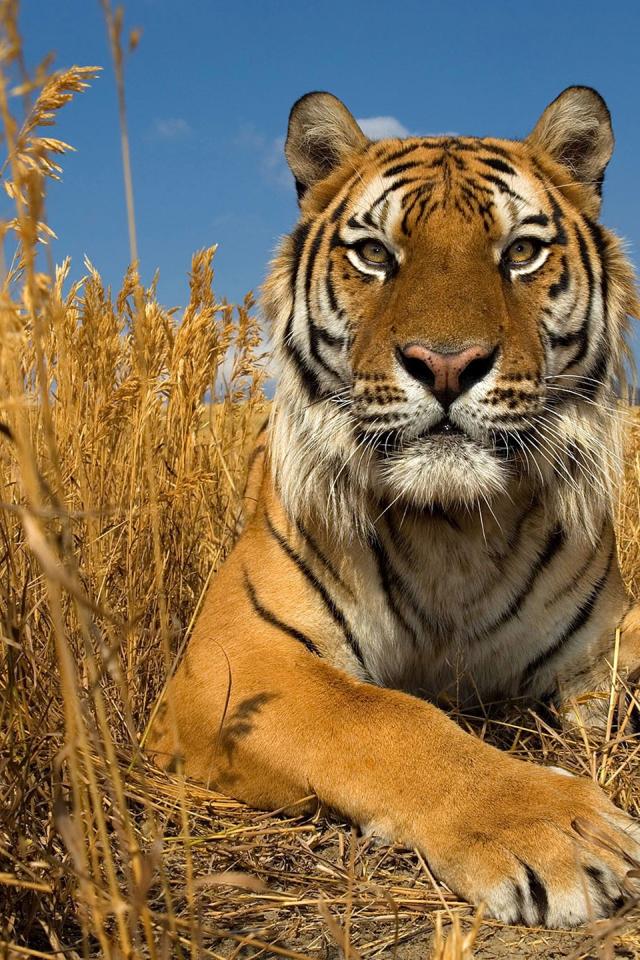 Wallpaper Proud tiger in dry grass