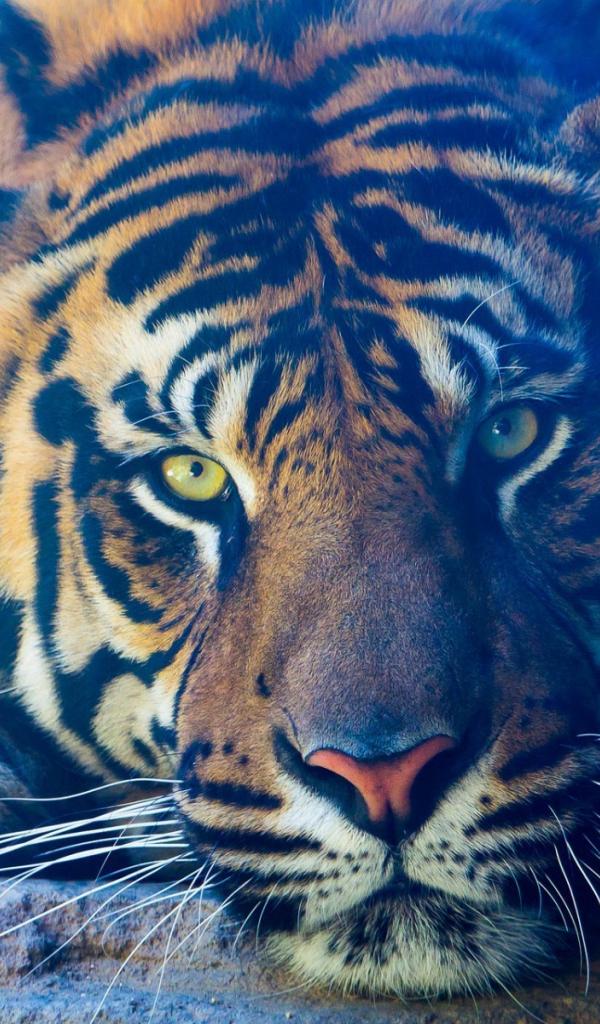 Wallpaper Pensive tiger lies on the stone
