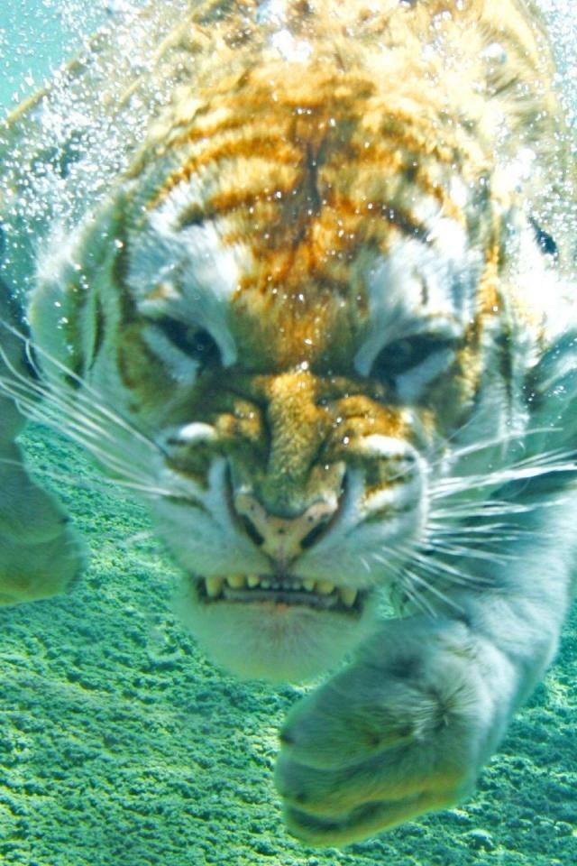 Wallpaper Angry tiger under water
