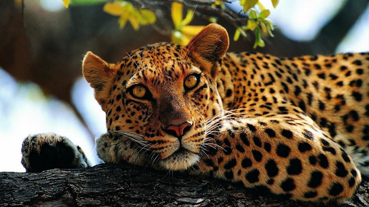 Wallpaper Spotted Jaguar lying on a tree