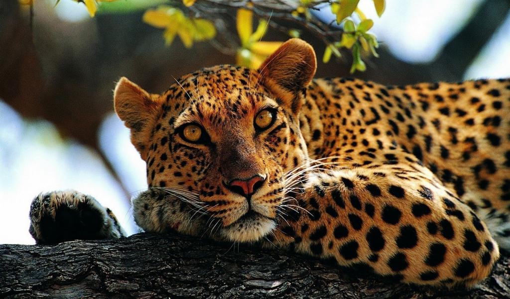 Wallpaper Spotted Jaguar lying on a tree