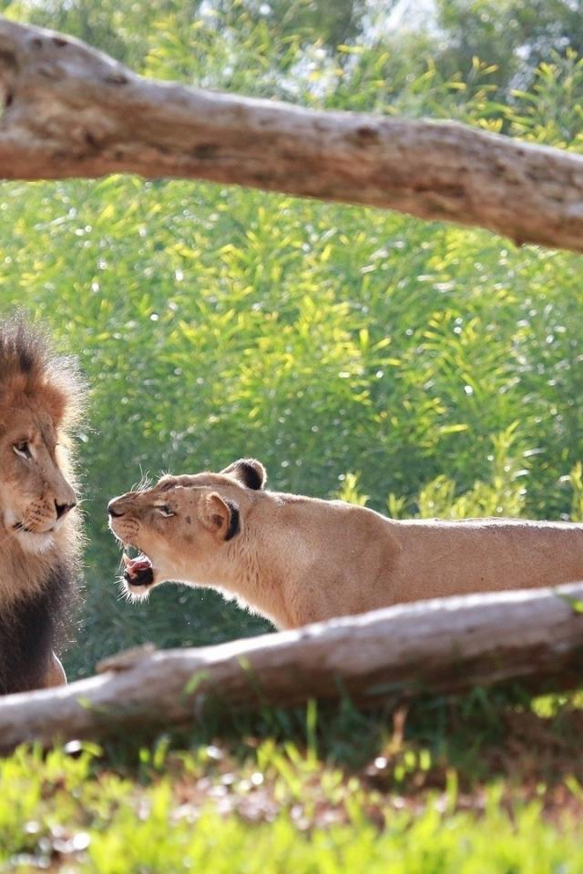 Wallpaper Lioness growling lion
