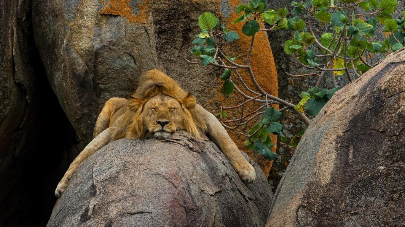 Wallpaper Lion sleeps peacefully on a rock