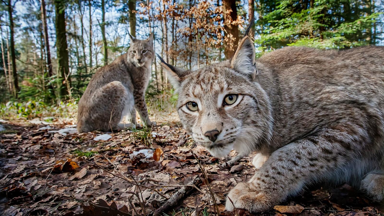 Wallpaper Two lynx in the forest