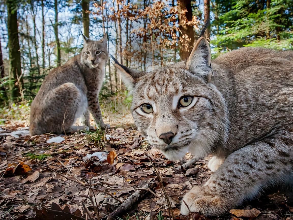 Wallpaper Two lynx in the forest