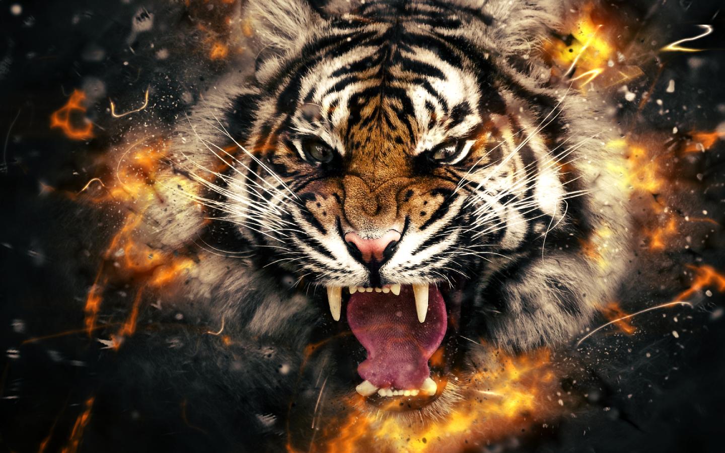 Wallpaper Fire evil tiger