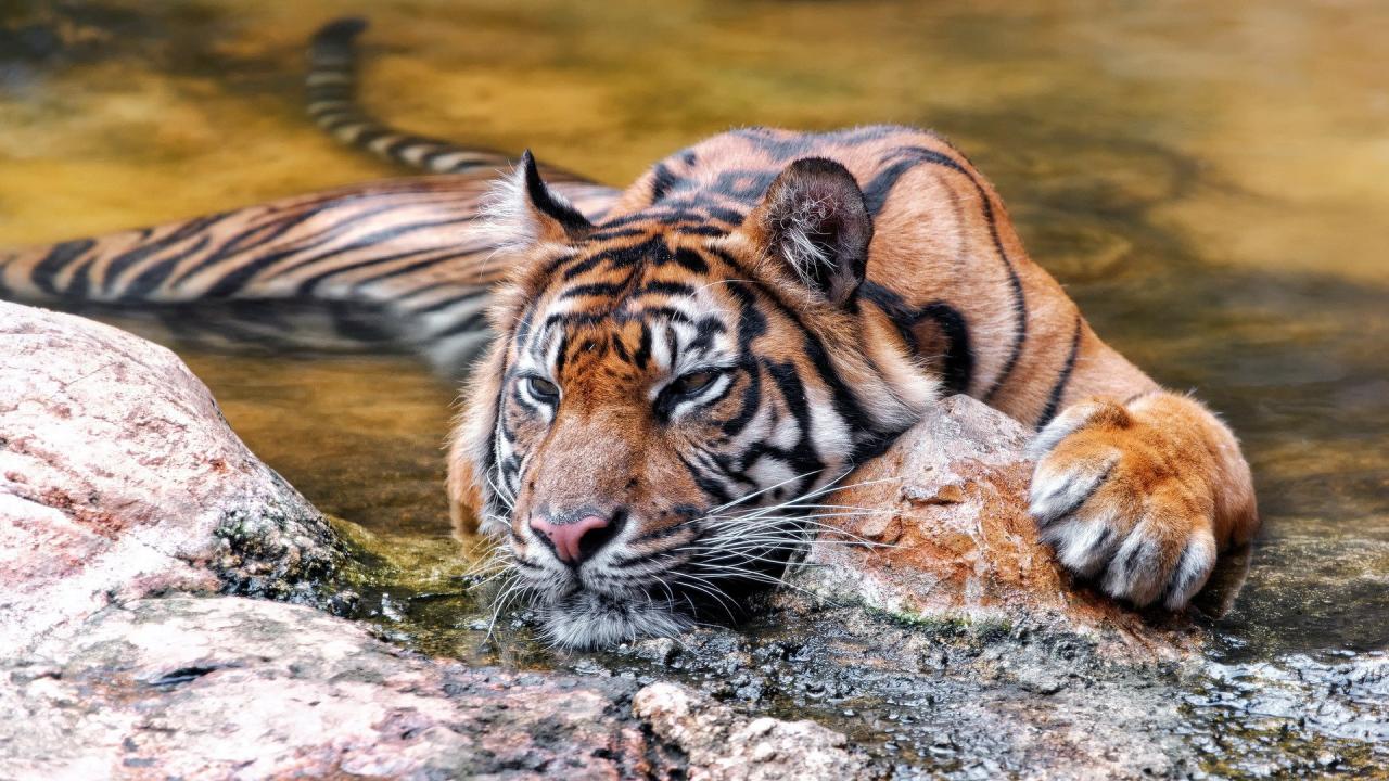 Wallpaper Beautiful floating tiger