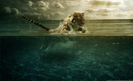 Wallpaper Tiger swimming in water