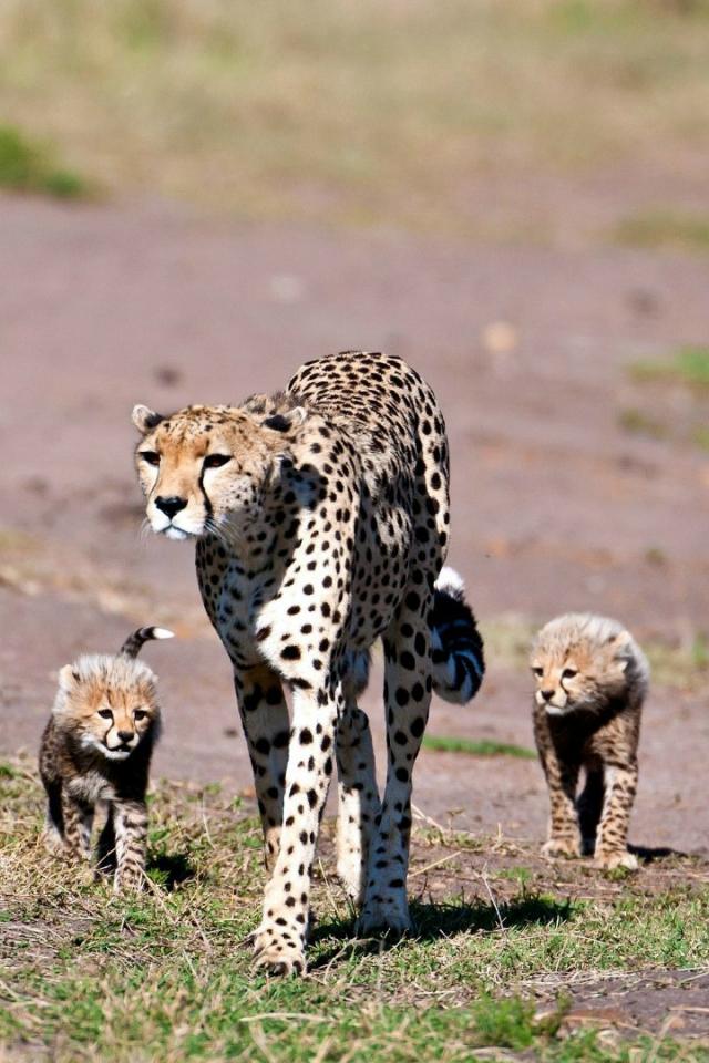 Wallpaper Cheetah mom with kittens