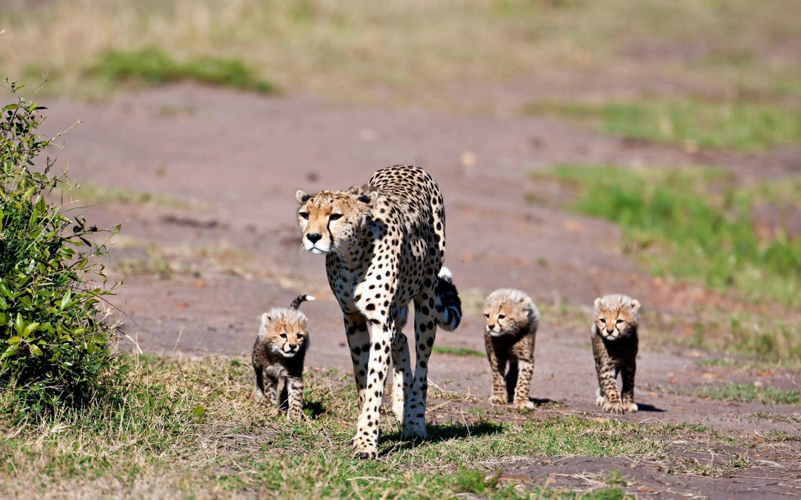Wallpaper Cheetah mom with kittens