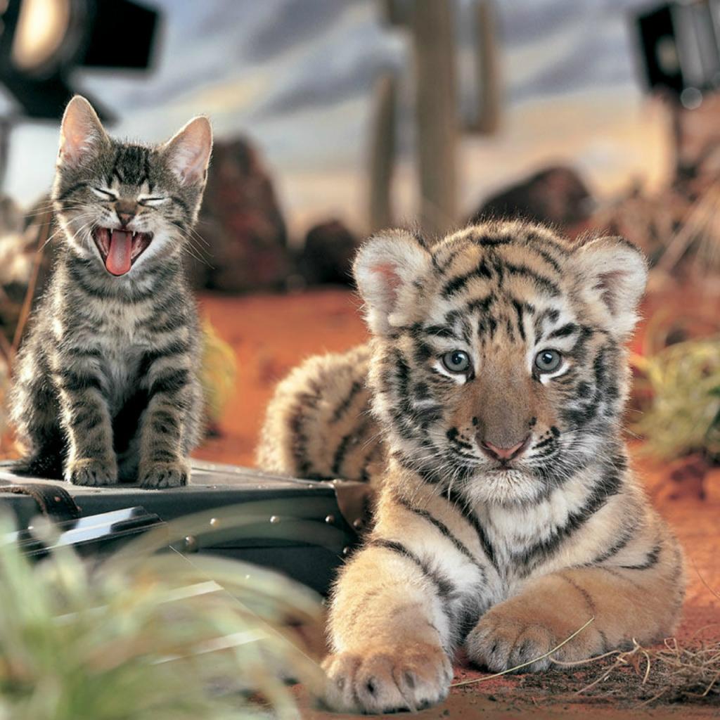 Wallpaper Tiger and kitten