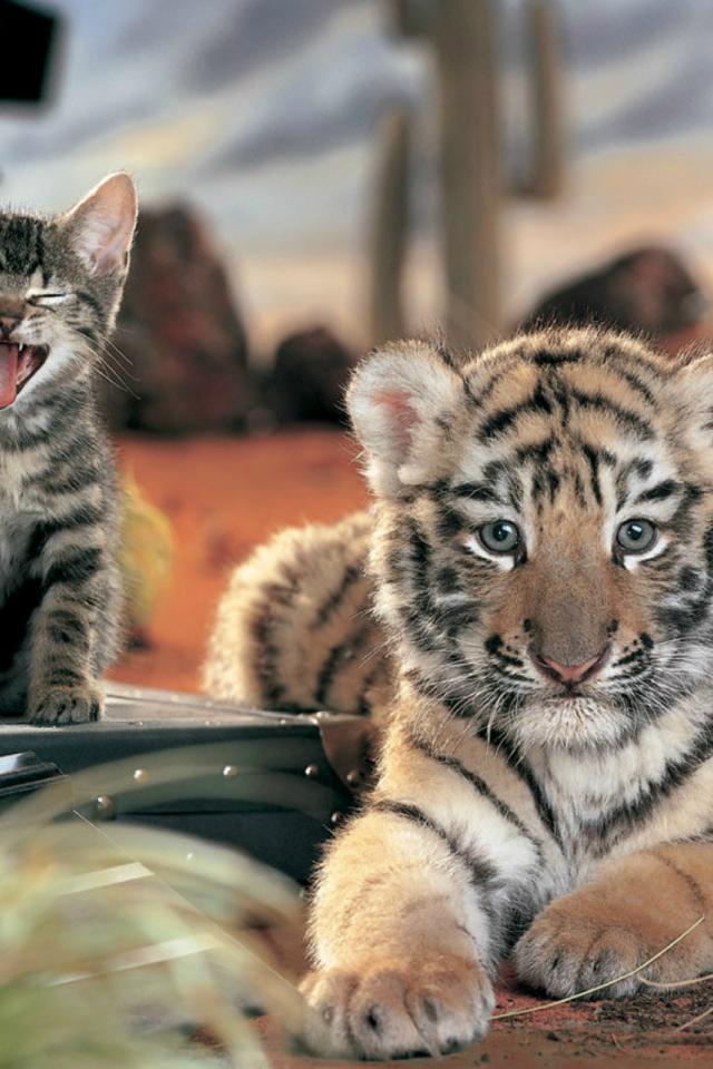 Wallpaper Tiger and kitten