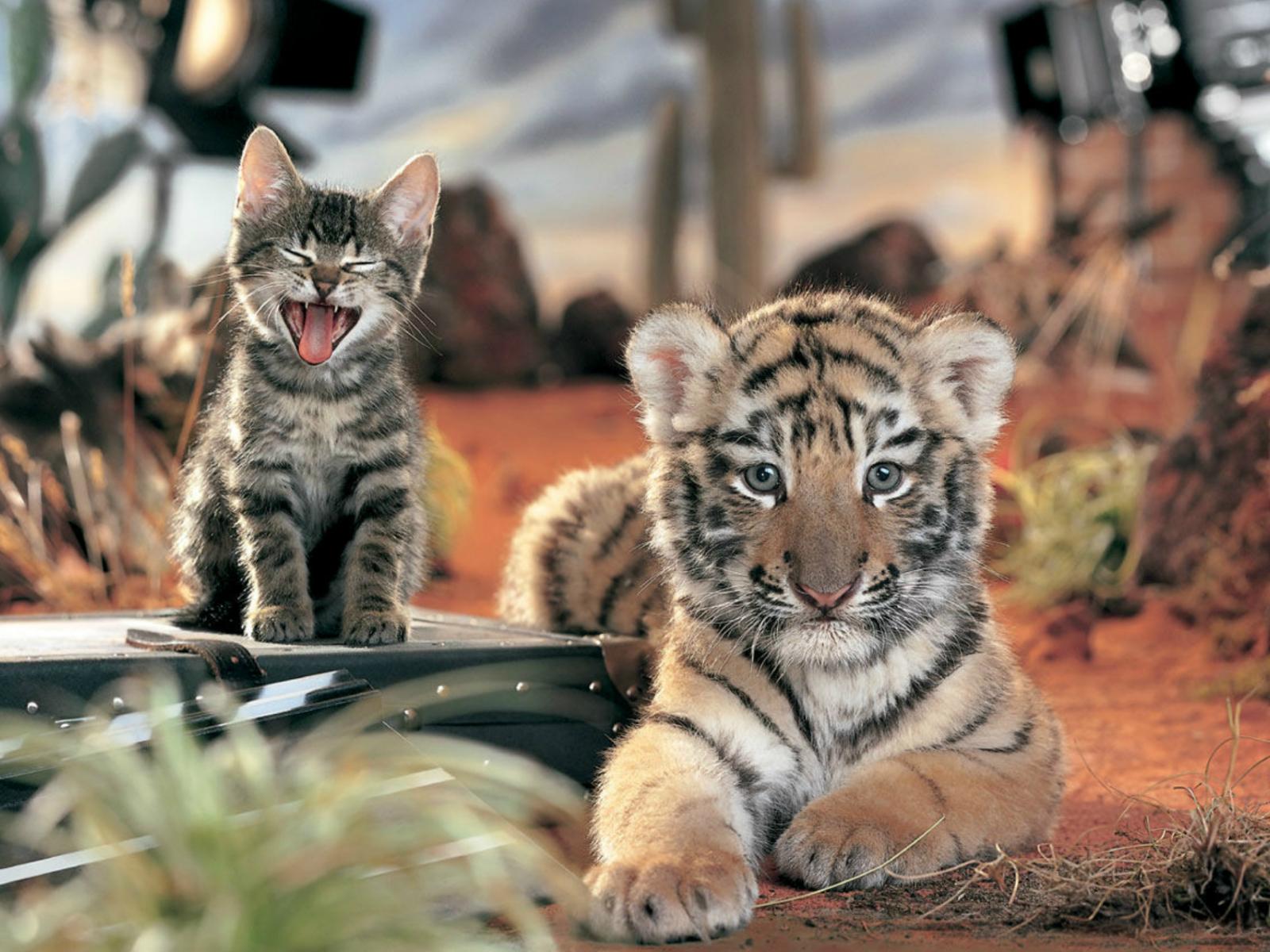 Wallpaper Tiger and kitten