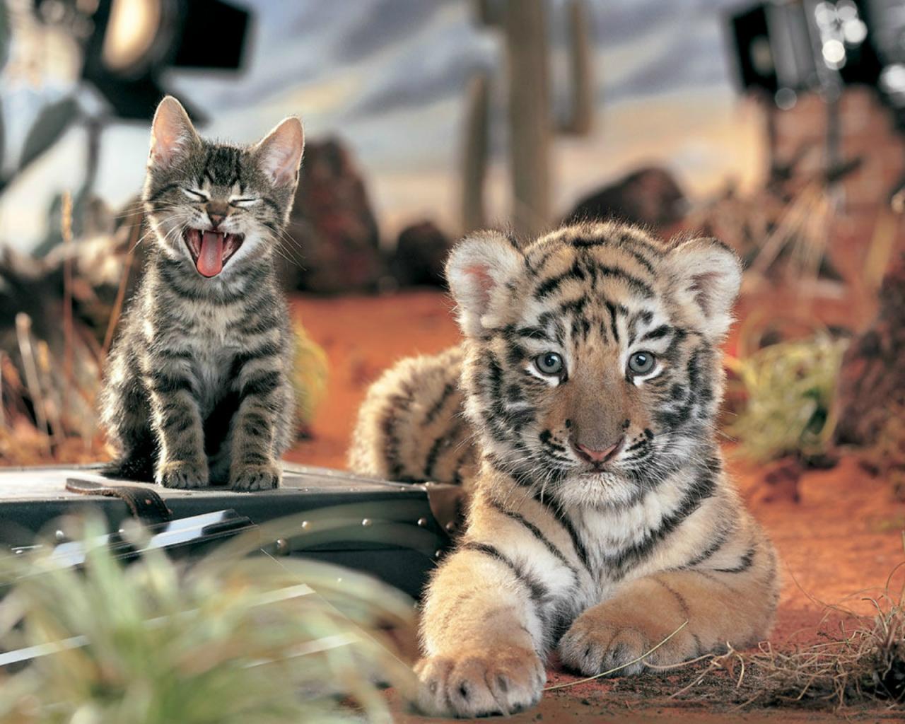 Wallpaper Tiger and kitten