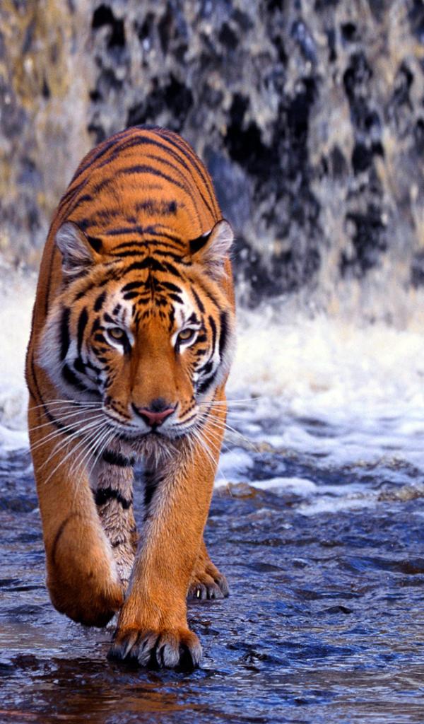 Wallpaper Bengal tiger at the waterfall