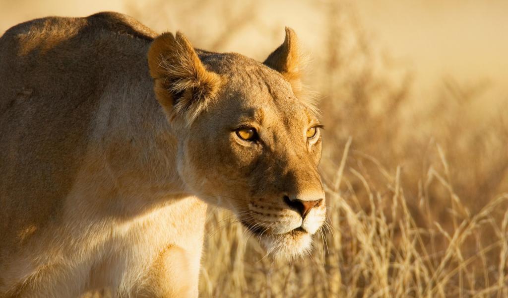 Wallpaper Lion lurking for prey
