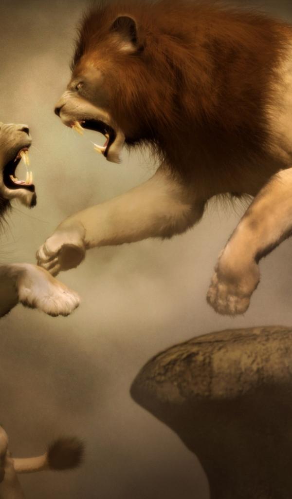 Wallpaper Battle of two lions