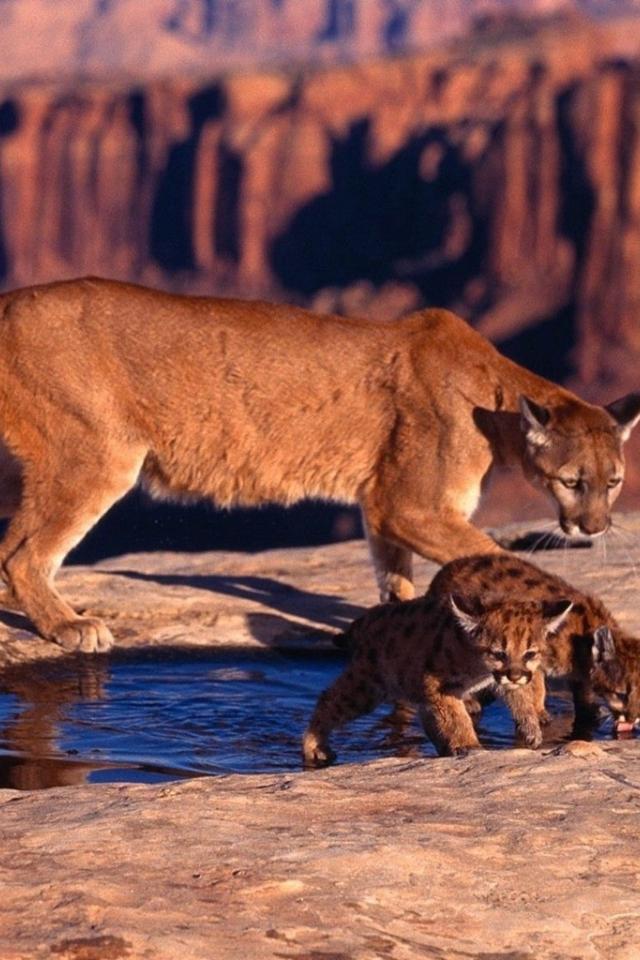 Wallpaper Puma with kittens