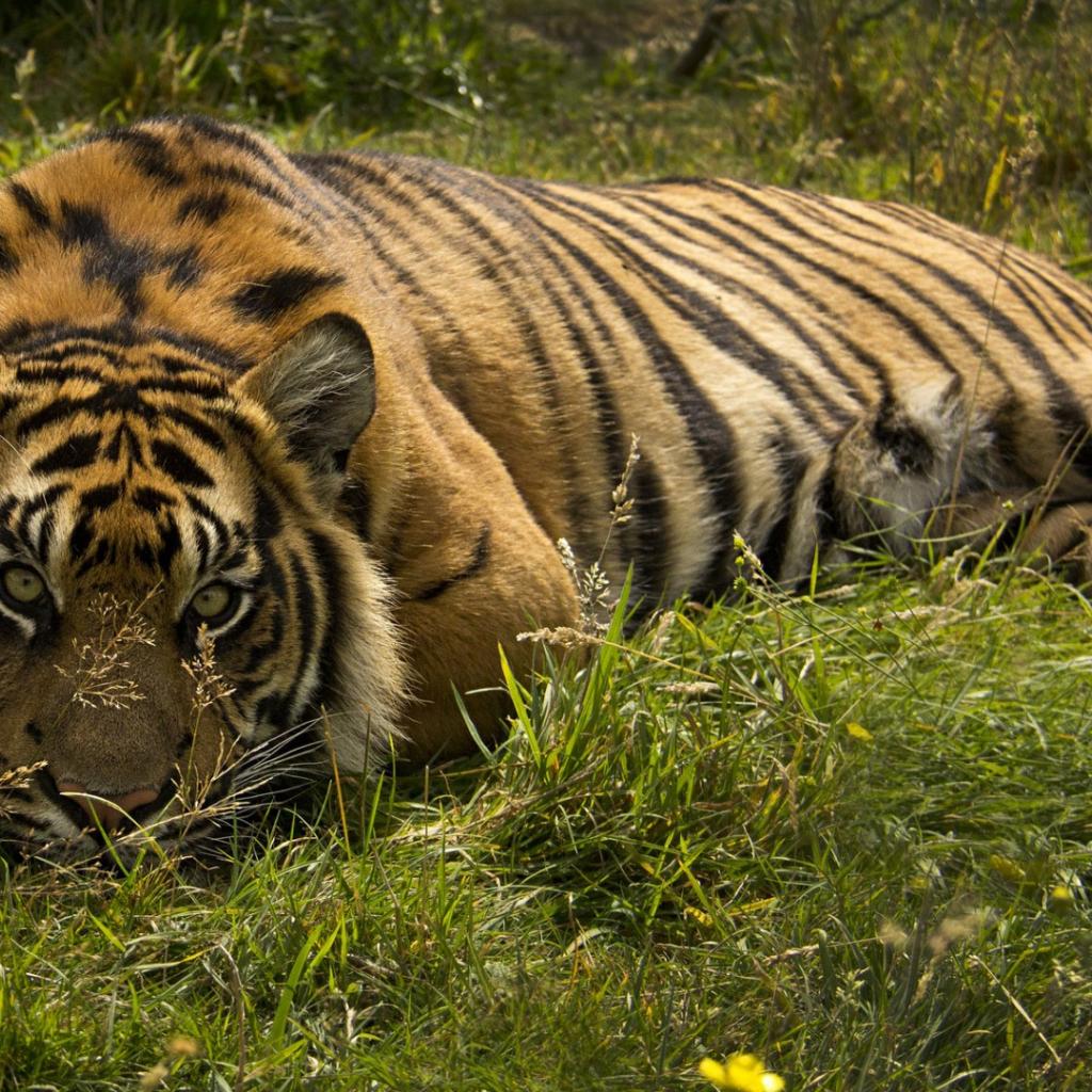 Wallpaper Tiger lying in the grass
