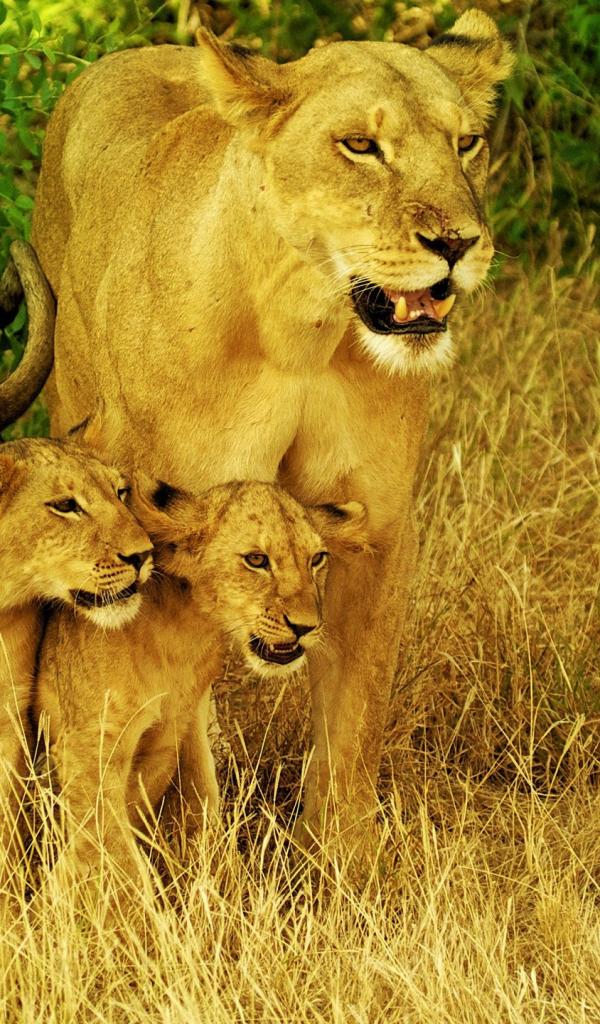 Wallpaper Lioness with her children