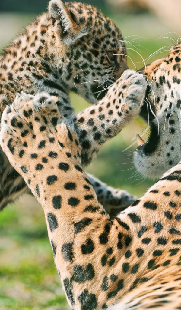 Wallpaper Jaguar cub fighting mother