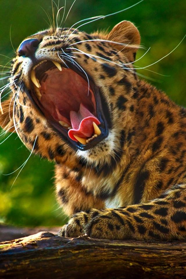 Wallpaper Leopard opened their mouth