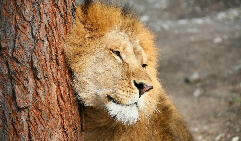 Wallpaper Lev rubs against the tree