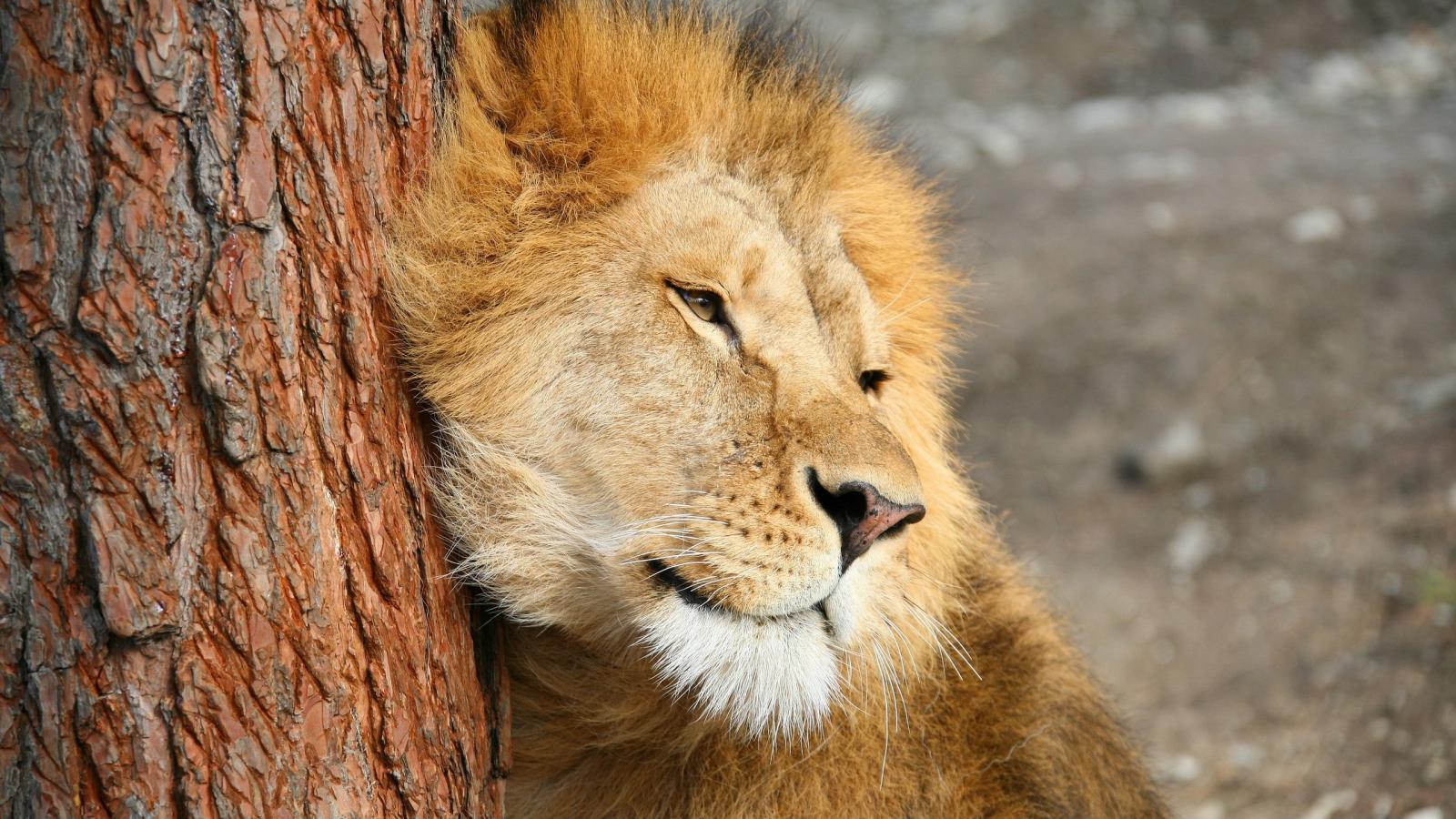 Wallpaper Lev rubs against the tree