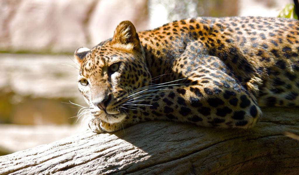 Wallpaper The leopard laying on a log