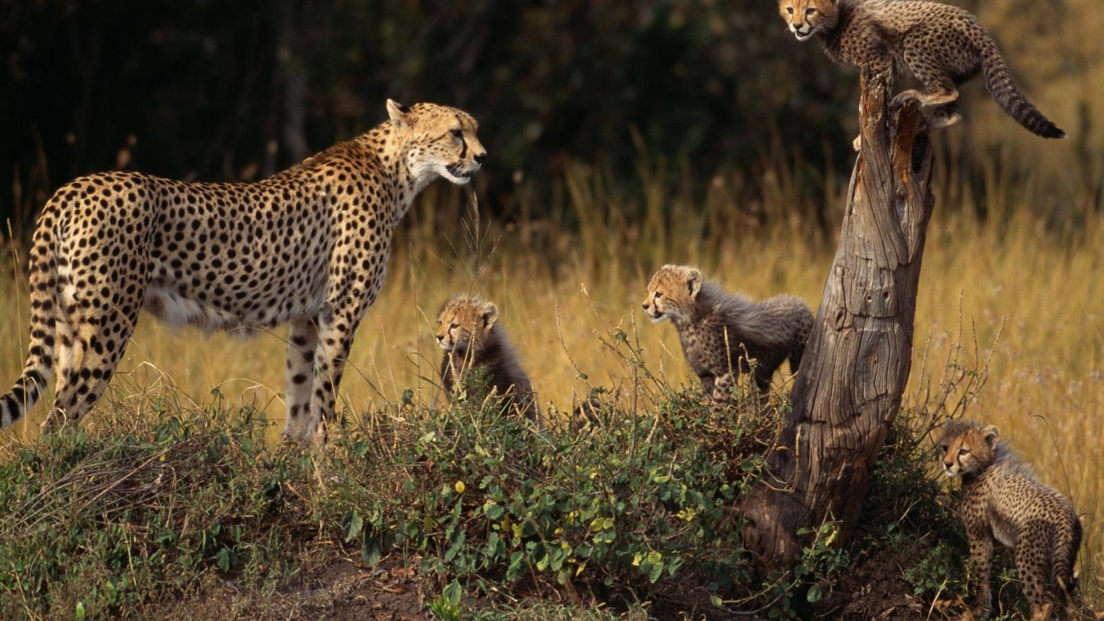Wallpaper Family of cheetahs in nature