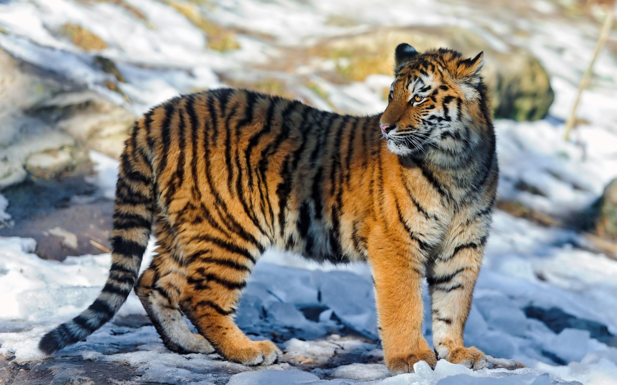 Wallpaper Striped tiger on snow