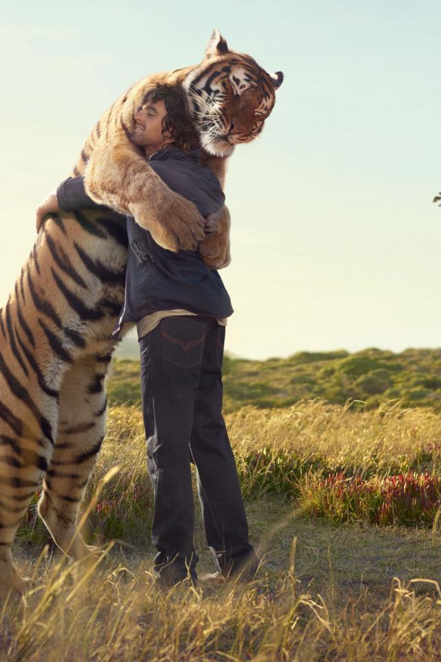 Wallpaper Tiger hugging man