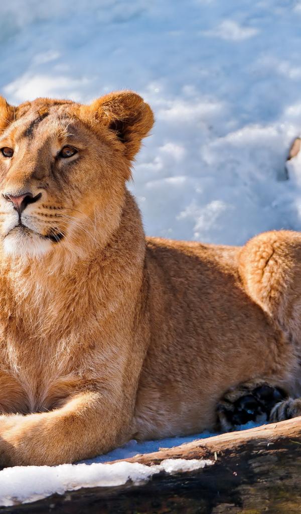 Wallpaper Lioness in the snow