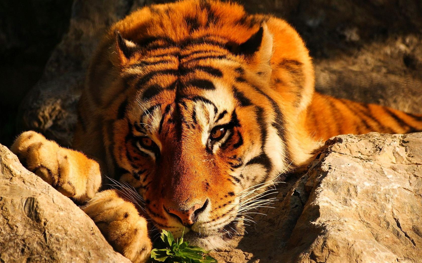 Wallpaper Tiger among the rocks