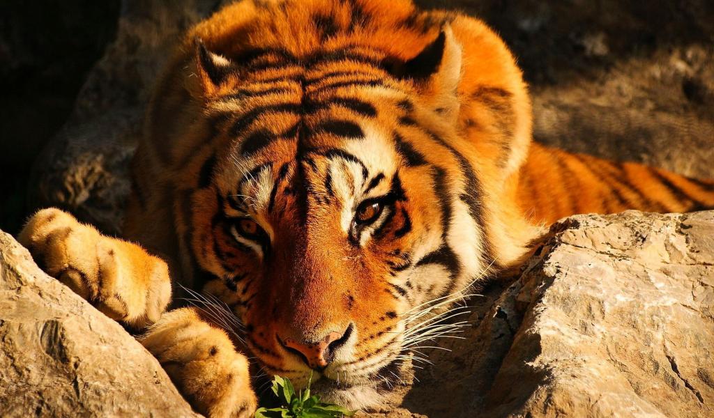 Wallpaper Tiger among the rocks