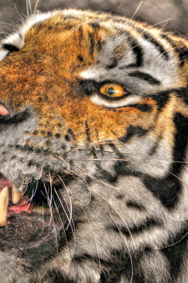 Wallpaper Tiger baring his teeth